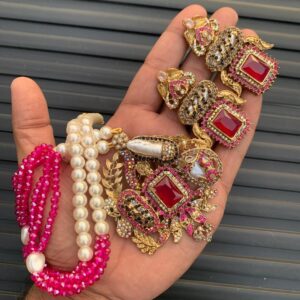 Rich ruby stones & pearl embellishments